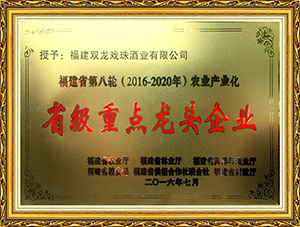雙龍戲珠酒業(yè)作為福建省白酒研發(fā)中心,榮獲福建老字號產(chǎn)品、福建省農(nóng)業(yè)產(chǎn)業(yè)化龍頭企業(yè)、福建東南窖酒文化館、科技小巨人領軍企業(yè),國家守合同、重信用單位等榮譽。